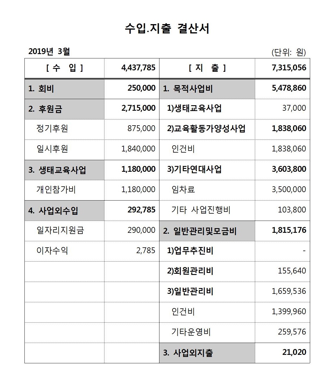 | 2019년 2월 수입지출보고 (0) | 2019.03.24 |