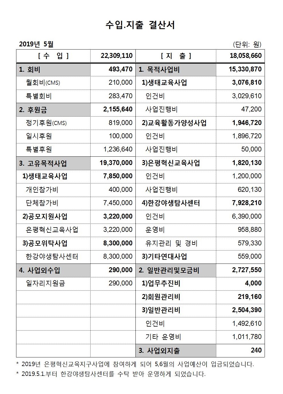 | 2019년 4월 수입지출보고 (0) | 2019.05.24 |