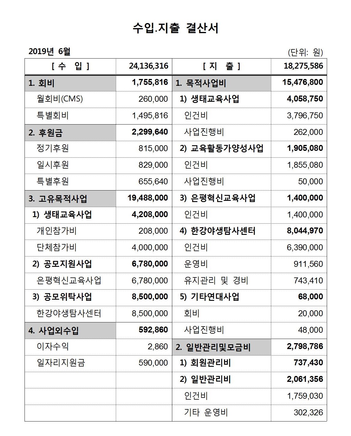 2019년 7월 수입지출보고  (0) 2019.09.02