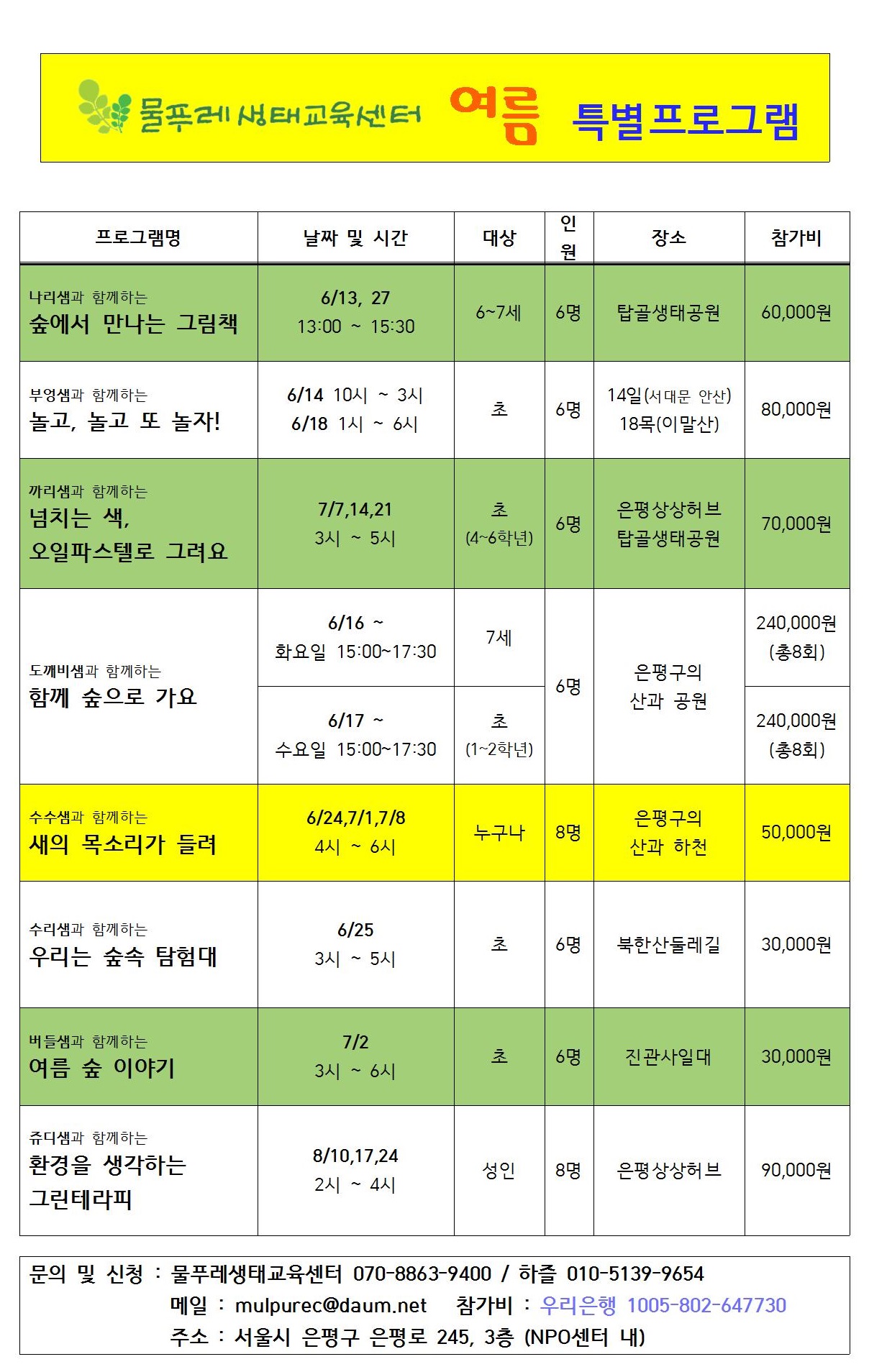 물푸레 여름프로그램 참가자를 모집합니다~~