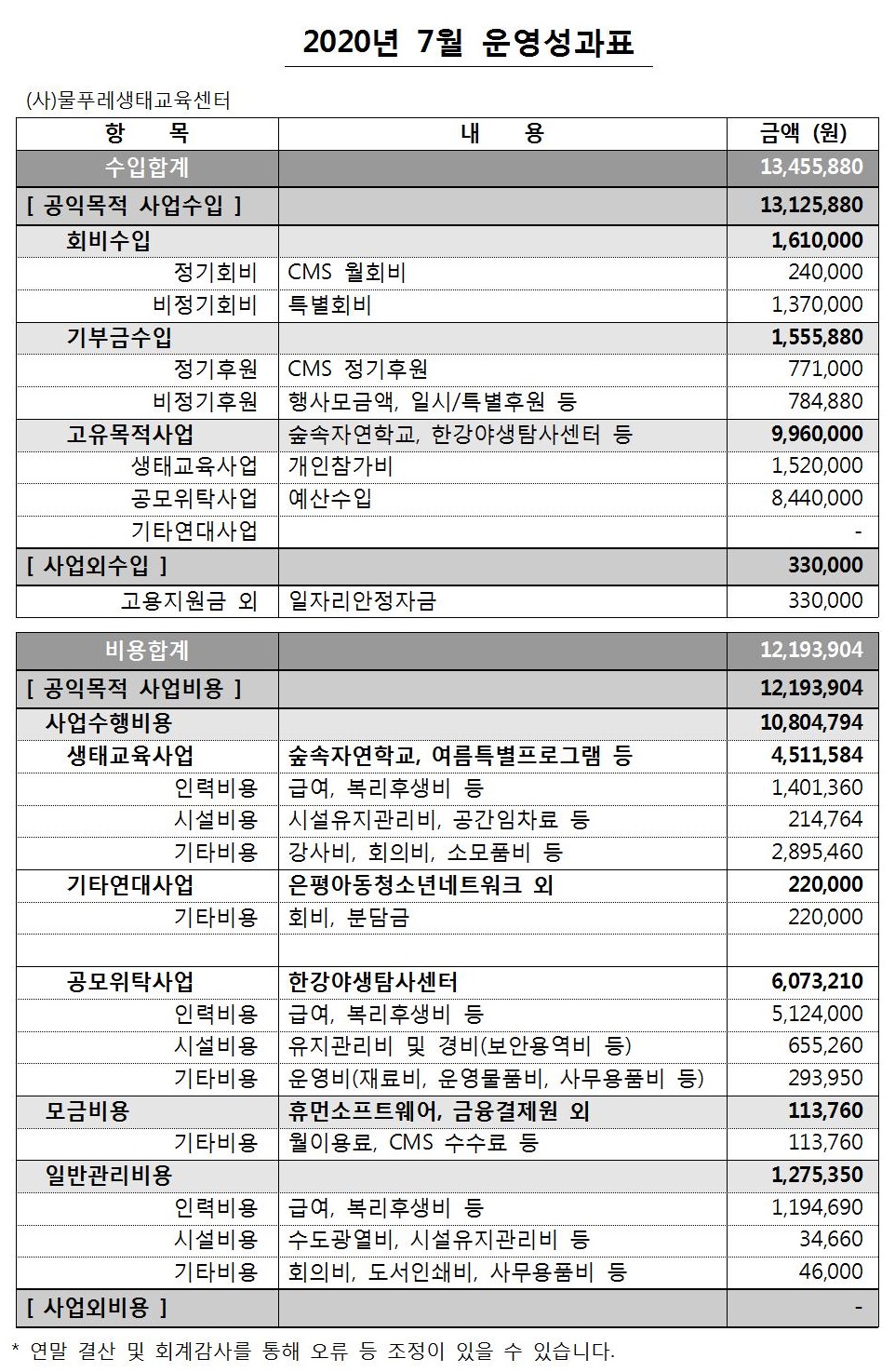 2020년 7월 운영성과표