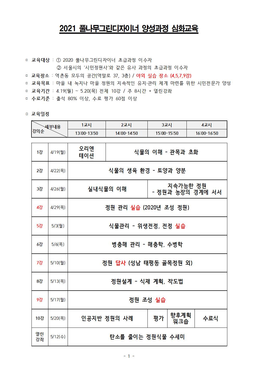 ♣교육기간 : 2021. 4. 19~ 5. 20 (매주 월, 목요일 오후 1시~5시, 전체 10강)