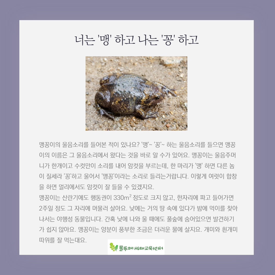 | 카드뉴스로 즐기는 숲해설-(10)큰산개구리 (0) | 2021.10.03 |