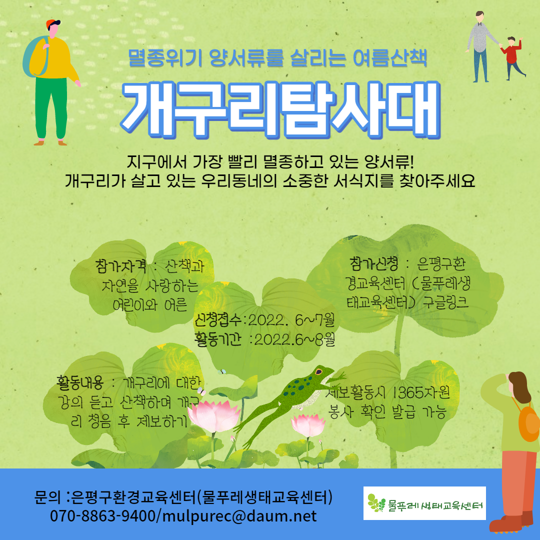 양서류를 구하는 여름산책 프로젝트'개구리탐사대'에 참여하세요!
