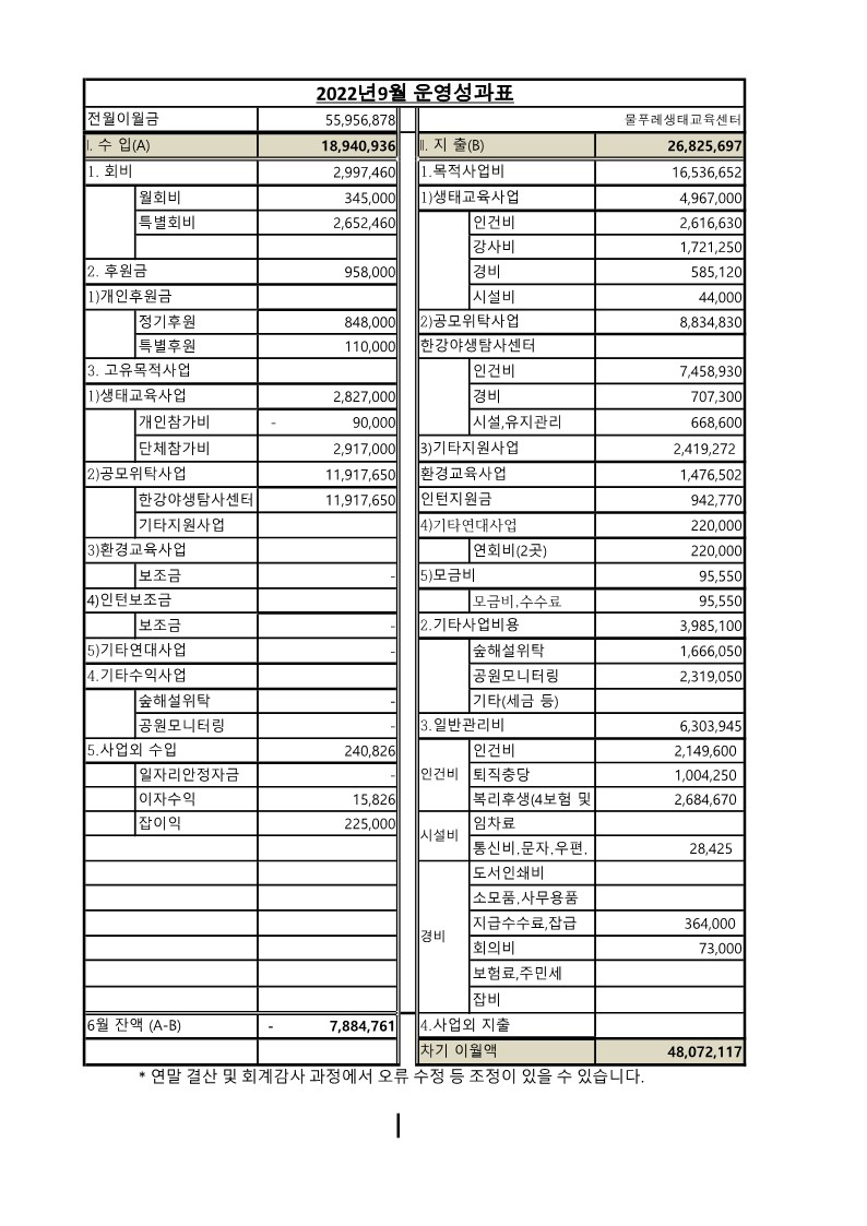 9월 운영성과표