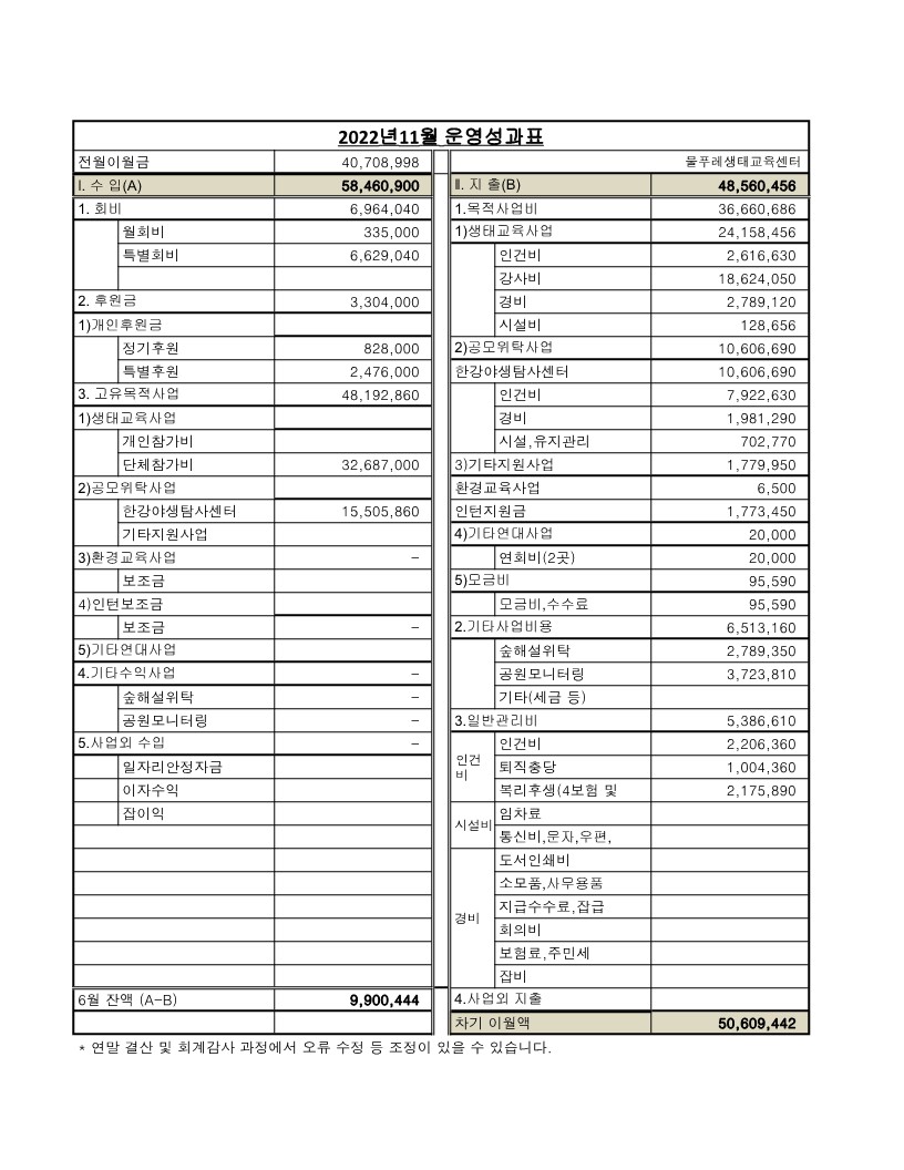 | 2022년 수입.지출 결산서 (0) | 2023.02.23 |