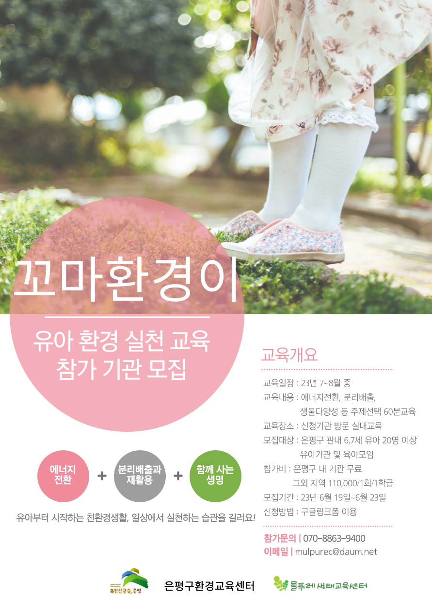 모집대상 : 은평구 관내 6.7세 유아 20명 이상 유아기관 및 육아모임