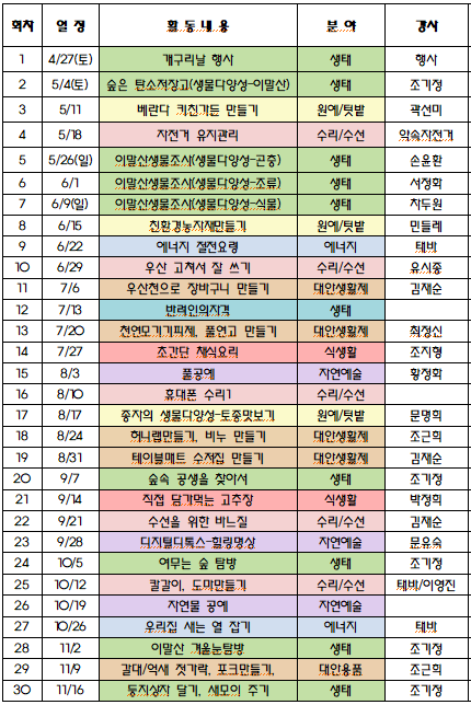 원예체험, 공예예술체험, 수리수선교실, 건강한 식생활, 대안용품