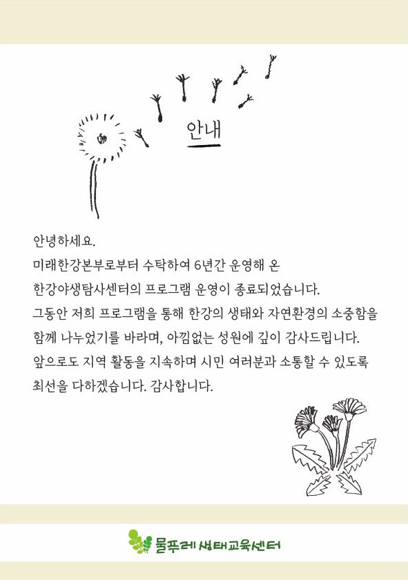 | 2025 물푸레생태교육센터 정기총회 및 후원회원 만남의 날 (0) | 2025.02.21 |