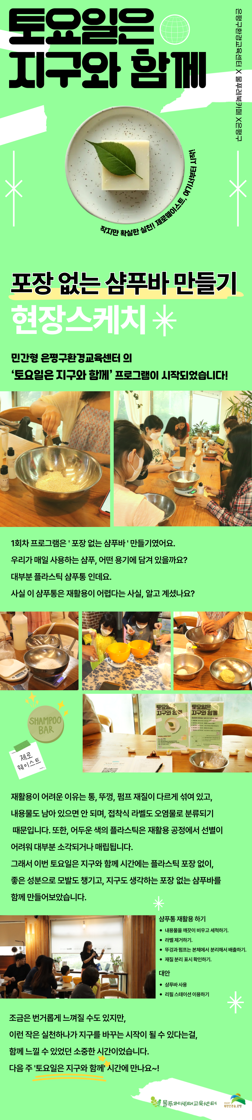 | [알림]토요일은 지구와 함께 1.포장 없는 샴푸바 만들기 (0) | 2025.06.20 |