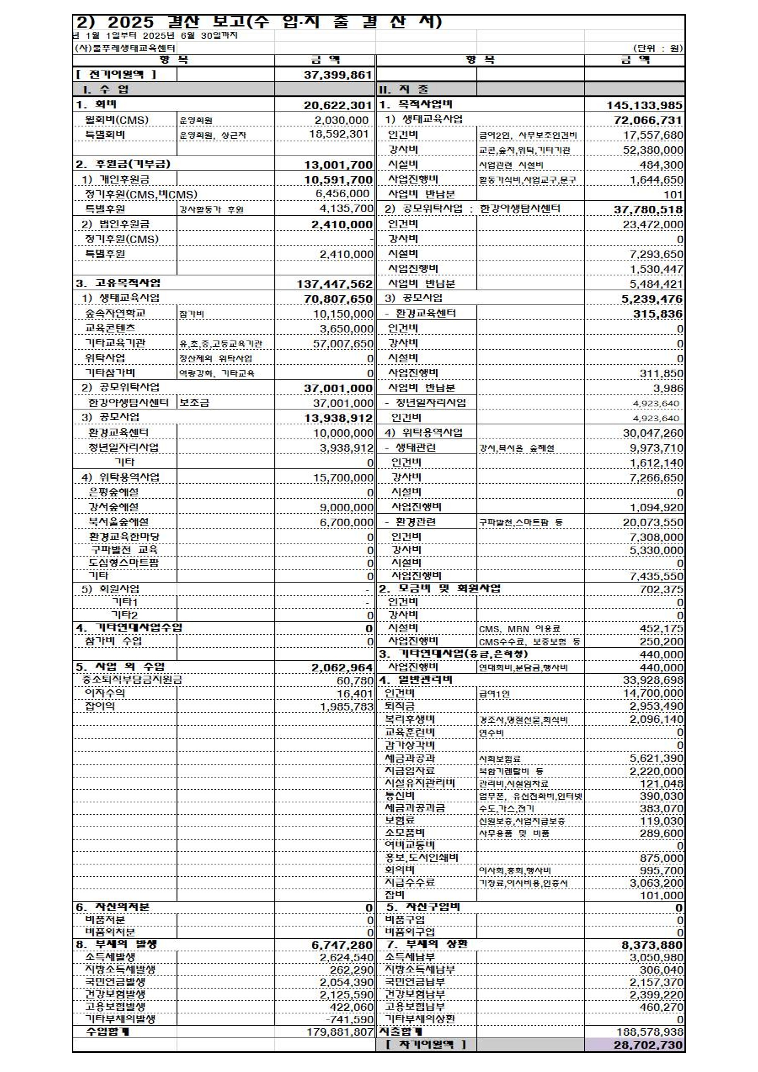 2025. 1~6월 물푸레 수입지출결산