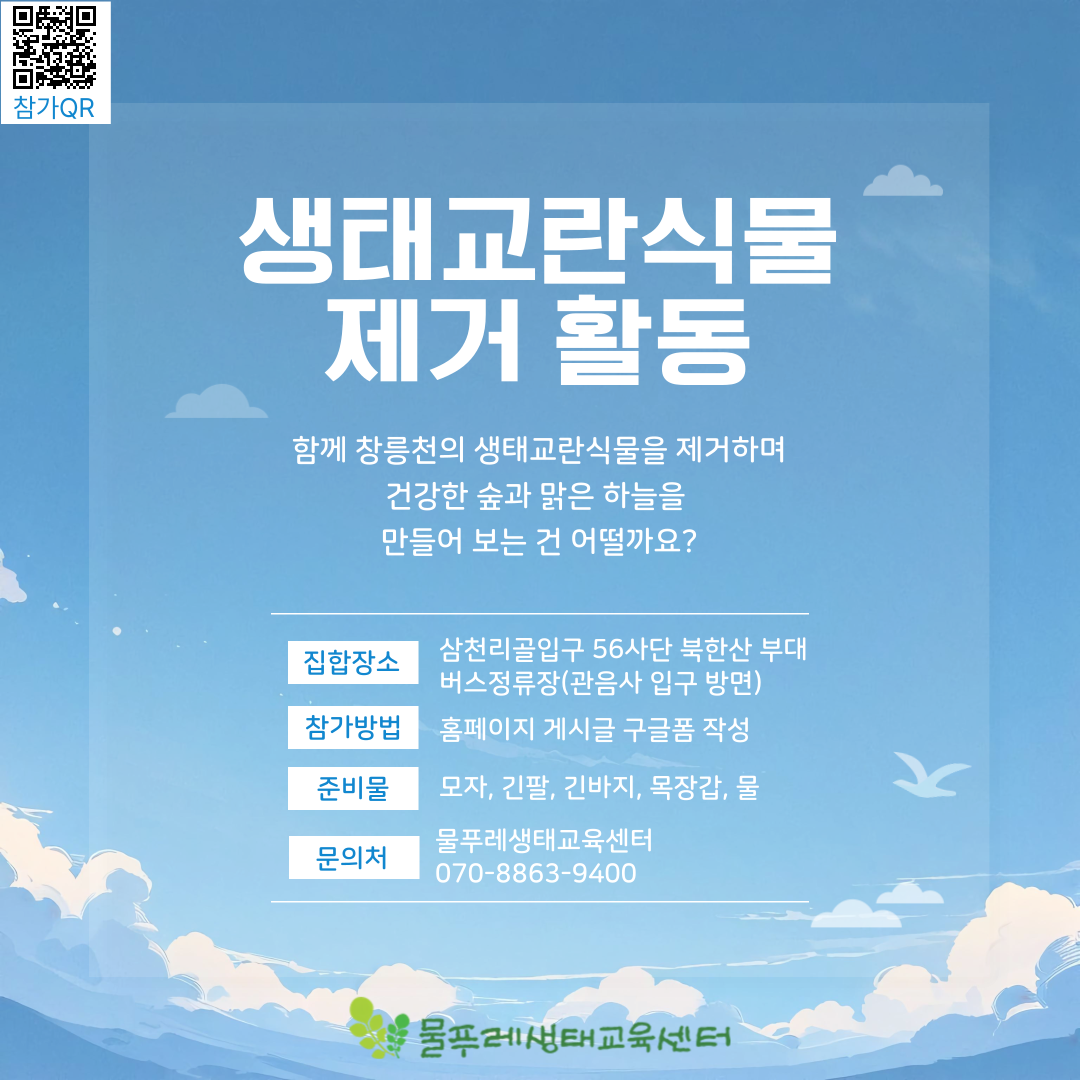 ❓ 문의처 : 물푸레생태교육센터 070-8863-9400