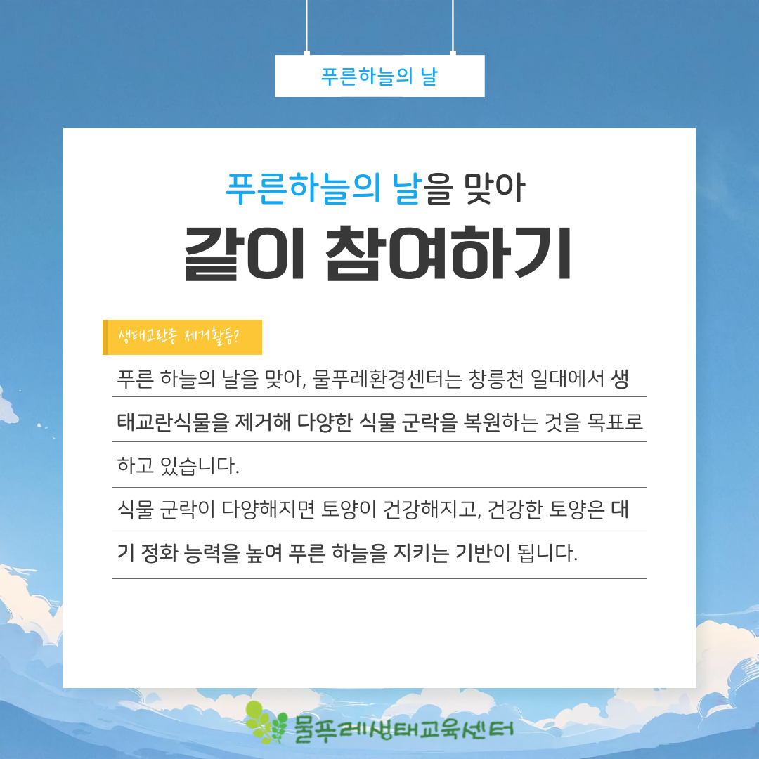 맑고 푸른 하늘을 지키는 기반이 됩니다. ☁️
