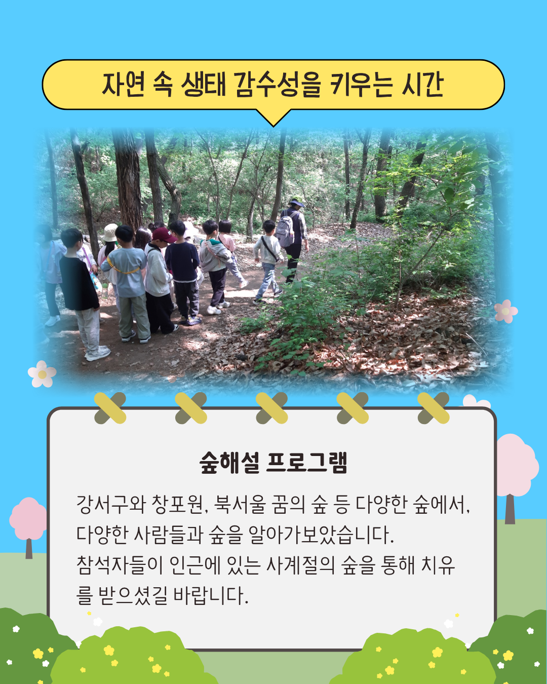 아이들과 숲을 걷고, 시민들과 생태를 이야기하며, 우리 동네 자연을 함께 돌보는 시간들.
