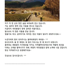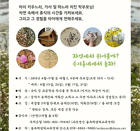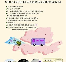 알림마당 썸네일형 리스트형 2019년 총회 안내 2019년 물푸레생태교육센터 총회 안내 - 일시 : 2019년 2월 21일(목) 3시 - 장소 : 서울혁신파크 상상청 2층, 상상의숲 - 2018년 사업평가 및 승인 - 2019년 사업계획 및 승인 * 준비물 : 나눔물품, 개인컵 사용하지 않는 물품을 가져오시면, 당일 참석하신 분들과 나누겠습니다. * 차를 가져오시는 분은 정문으로 오셔야 합니다. (옆문과 후문은 차량출입 불가) * 1시간 이상 주차 시 주차요금이 발생합니다. 문의 및 위임 : 070-8863-9400, mulpurec@daum.net * 서울혁신파크 상상청 위치 안내 더보기 물푸레 후원자 여러분~ 더보기 2018년 기부금영수증 안내 2018년 기부금영수증 안내 2018년에도 물푸레생태교육센터와 함께 해주신 회원님, 고맙습니다.한걸음 한걸음 도와주시는 회원님 덕분에 물푸레는 부지런히 나아가고 있습니다. 물푸레에 정기 또는 비정기로 후원해주신 금액은 1월 15일부터 국세청 연말정산간소화 서비스를 통해 확인하실 수 있으며, 기부금공제를 받으실 수 있습니다.혹시 후원내역이 확인이 되지 않는다면 물푸레로 연락주시기 바랍니다.메일이나 팩스 등으로 받으실 수 있습니다. 고맙습니다.2019년 새해 복 많이 받으시고, 건강하시기를 바랍니다. 물푸레생태교육센터 더보기 물푸레랑 신나게 교육활동 할 사람 모여라~ ↓↓↓↓↓ 신청서를 다운받아 작성 후, mulpurec@daum.net 로 보내주시면 됩니다~ 더보기 2018 숲속자연학교 2학기 참가자모집 더보기 숲속자연학교 '여름방학 특집프로그램' 더보기 생태보전시민모임 스무살, '도시에서 초록을 꿈꾸다' 지난 7월 11일은 생태보전시민모임이 스무살이 된 기념으로 '도시에서 초록을 꿈꾸다'라는 주제로 진행한 후원의밤 행사가 있었습니다. (녹번역 은평상상허브센터 3층) 공간이 다 찰정도의 활동가와 회원, 시민들이 모여 성황리에 진행이 되었습니다. 간단한 저녁식사와 함께 음악과 이야기가 있는 행사였습니다. 물푸레의 친정~ 생태보전시민모임이 어떤 일을 하는지 궁금하다면~~~>> http://www.ecoclub.or.kr/wp/ "생태보전시민모임 & 물푸레생태교육센터" 앞으로 10년, 20년 응원과 후원부탁드립니다~ ^0^ 더보기 걷기모임 3차 모집공지 * PC에서 작은 글씨가 잘 안 보일 경우, 사진 저장 후 보시면 됩니다. 더보기 자연관찰 기록 '네이처링'교육 더보기 금개구리와 함께 살아요 (개구리 버스 투어) ** 마감되었습니다. 감사합니다. ----------------------------------- 서울의 마지막 논습지인 김포공항 인근 금개구리 논에서 다양한 생명을 만나보세요~~~ 참가신청서 작성은 아래 클릭 https://goo.gl/forms/pjy9upK2A8QYdnro2 세부 일정 5월 19,26(토) 오전 9시~12시 6월 6,13(수) 23,30(토) 오전 9시~12시 7월 21(토) 22(일) 28(토) 29(일) 30(월) 31(화) 오후 5시~8시 8월 4,11,18,25(토) 오후 5시~8시 9월 1,8(토) 오후 5시~8시 10월 6,13(토) 오전 9~12시 * 선착순 마감이며, 신청 확인 후 담당자가 연락을 드립니다. ----------------------------- ** 신.. 더보기 행복한 부모와 아이를 위한 생태교실 신청서 작성(아래 주소 클릭) "https://docs.google.com/forms/d/e/1FAIpQLSdAFSURdZ5LwXG5d1dQDnRLyBV2GDJYUMysXCLoKLHC2jYh0g/viewform?embedded=true" 더보기 그냥~걸어보자! 생각없이 걷고 걷는 모임- 참가신청받습니다^^ 더보기 물푸레 이모저모 물푸레 활동소식 1. 2018년 숲속자연학교 봄학기가 시작되었습니다. 숲속의 썩은 나무에 누가 구멍을 뚫었을까요? 아이들이 청개구리선생님과 함께 관찰하고 있군요. 긴투명막에 쌓여있는 알의 모습이 마냥 신기한 아이들. 어떤 멋진 생물이 탄생할지 궁금해요! 2. 2018년에도 다양한 곳의 양서류모니터링을 하고 있습니다. 진관동 웅덩이의 알덩이 모니터링 참가자들 새 해가 되고, 햇살도 많이 따스해진 3월입니다. 물푸레도 기지개를 펴며, 산으로 계곡으로 종종 걸음을 걷고 있습니다. 우리 동네의 자연과 함께 하기 위한 물푸레의 다양한 교육들은 올해에도 쭈욱~ 이어집니다. 더보기 2018 금개구리 쌀 유기농 공동체 농사 더보기 양서류 모니터링단 모집합니다~ 더보기 2018년 (사)물푸레생태교육센터 정기총회 “엄동설한”이라는 사자성어가 너무너무 어울렸던 겨울이었습니다. 추위도 어느 정도 물러가고 있는 이 시점에 엄동설한보다 무서운 설이 다가오네요.^^. 새롭게 준비하는 마음으로 맞이하고 계시겠죠? 설을 마치고 새해 첫 만남을 회원님들과 맞이하기 위해 물푸레생태교육센터가 2018년 총회를 준비하고 있습니다. - 언제? 2018년 2월 22일 목요일 늦은 6시~ - 어디서? 서울혁신파크 미래청2층 큰이야기방1 (3,6호선 불광역 2번 출구) - 무엇을? 2018년 정기총회 1. 2017년 사업 및 결산 보고, 승인 2. 2018년 사업계획 및 예산안 승인 3. 정관개정 4. 임원선출 5. 기타안건 등 ** 참석여부와 불참시 '위임'에 관한 내용은 문자나 대표메일로 부탁드립니다. ** 참석여부 회신 : 010-3.. 더보기 2018 숲속자연학교 참가신청 더보기 2017년 귀속 기부금영수증 안내 2017년 물푸레의 활동에 힘을 보태어주신 회원과 후원자 여러분, 고맙습니다. 물푸레생태교육센터는 기부금영수증을 우편으로 발송하지 않습니다. 2017년 후원해주신 금액은 1월 15일부터 국세청 연말정산간소화 서비스를 통해 확인하실 수 있습니다. 