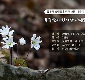 알림마당 썸네일형 리스트형 <특강> 일상에서 생태적으로 살기 강사 : 민성환 (생태보전시민모임 대표) 일시 : 2015. 10. 08. (목) 오후 1시 장소 : 물푸레 북카페 더보기 [모집] 짜장면 같이 드실 분~ "짜장면 같이 드실 분~" 물푸레생태교육센터가 혁신센터 내부로 이사합니다. 함께 도우시고 짜장면 같이 드실 분 모집합니다~^^ * 이사날짜 : 10월 12일(월) 9시~ * 모집인원 : 남자 2명, 여자 3명 * 참여 : 댓글이나 문자(070-8863-9400) * 보수 : 짜장면 무.한.리.필. 더보기 2015 갈현텃밭 생물대탐사 참가신청 2015갈현텃밭 바이오블리츠 행사 우리동네에는어떤생물들이살고있을까? 전문가와함께시민조사단이되어생물대탐사활동!! 일시: 9/19(토) 13:30~18:00 장소: 은평구 갈현텃밭 일대 대상: 은평구민 누구나(초등학생 이상) 모집인원: 50명(선착순 모집) 준비물: 필기구, 모자, 물, 야외활동복장 참가비: 5,000원 문의및접수: 070-8863-9400(물푸레생태교육센터) 기타: 자원봉사시간 인정 더보기 [모금특강] 모금공식 인수분해 '모금, 회원 확대, 후원자 확보..' 여기에는 기본적인 요소와 공식이 존재합니다. 이것을 이해하기 위한 쪽집게 강의가 열립니다. 당일 행사에 참여하시려는 분들은 '신청하기'를 눌러주세요. 신청하신 분은 게시물에 답글 부탁드립니다. •일시 : 8월 18일 (화) 오후 6시 30분 •장소 : 서울시NPO지원센터 1층 '품다' •신청하기 : goo.gl/H5IRhT 더보기 2015년 숲속자연학교 하반기 모집 숲에서 자라는 아이들. 숲속자연학교. 하반기 숲친구들을 모집합니다~ 회원님들을 위해 자녀들에게 제공되는 숲학교 프로그램입니다. (비회원도 참가 하실 수 있습니다만, 모집인원 초과시 회원님들께 우선권이 있습니다) 모집기간 : 2015년 7월 20일 ~ 8월 23일 대상 : 은평구, 강서구의 5세 이상의 유아, 초등학생 자세한 내용은 웹자보를 참고해주세요^^ 더보기 [8/7~8] 개구리를 생각하는 청소년 생물다양성 캠프 더보기 [7/25] 생보시 회원나들이 - 아빠와 함께하는 에코데이캠프 "꽃섬나들이" 아빠 엄마와 함께 하는 재미난 한강변 나들이입니다^^ 서두르지 않으시면 마감된데이~~^^ 더보기 양서류 생태통로 개선방안 세미나 더보기 물푸레생태교육센터 2015 세계 개구리의 날 캠페인 은평구 캠페인 "개구리는 폴짝! 지구는 활짝^~^" 강서구 캠페인 "김포공항습지의 멸종위기 개구리 3형제를 지켜주세요" 더보기 [회원나들이] 봄꽃맞이 천마산 야생화기행 교육활동가와 함께 봄맞이 천마산 야생화기행 갑니다. 차량준비로 인원 파악 필요합니다. 댓글로 신청해 주세요. 주 제 : 봄꽃맞이 야생화기행 장 소 : 천마산 일 시 : 2015년 4월 2일(목) 8:30~20:00 준비물 : 점심 도시락, 간식, 마실물 참가비 : 만원 출발지 : 구파발역 1번출구 문 의 : 070-8863-9400 더보기 생태보전시민모임 <3월 회원의 날> 행사 * 아이 놀이방 운영합니다. * 식사 준비 때문에 참석하신 분은 회신 부탁드립니다. 더보기 물푸레 교육활동 - 마을별 숲속자연학교 - 유아 생태교육 - 초등학교 생태교육 - 기관협력 생태교육 - 지렁이 텃밭 - 자유학기제 수업 - 동아리 활동 - 백련산지기 - 신나는 에코캠프 * 교육활동 내용은 물푸레생태교육센터 카페(http://cafe.daum.net/mulpurecenter)를 통해 공유합니다. 더보기 2015년 전반기 숲속자연학교 신입생 모집 더보기 회원가입 클릭 ▶ 회원가입 더보기 2015년 정기총회 - 물푸레생태교육센터 일시 : 2015년 2월 14일(토) 3시-7시 장소 : 은평상상허브센터 (녹번역 4번출구) 더보기 이전 1 ··· 3 4 5 6 다음