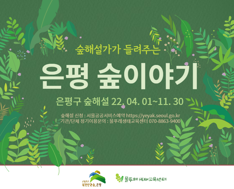 카테고리 없음 22년 4월 은평구숲해설 신청 물푸레생태교육센터 2022. 4. 20. 18:31 22년 4월 주말 은평구숲해설 신청 (서울시 공공서비스예약) 저작자표시 비영리 변경금지 (새창열림)